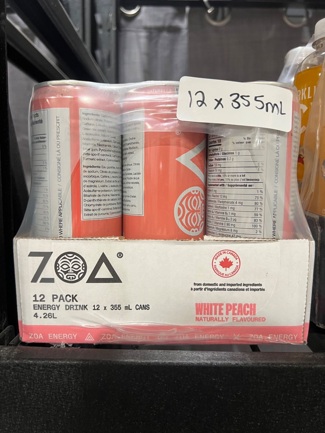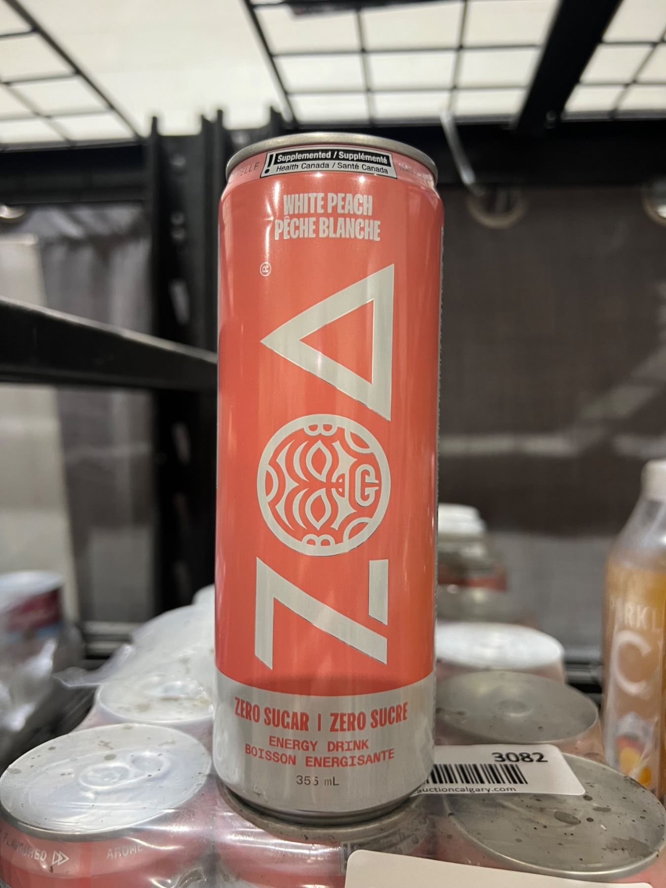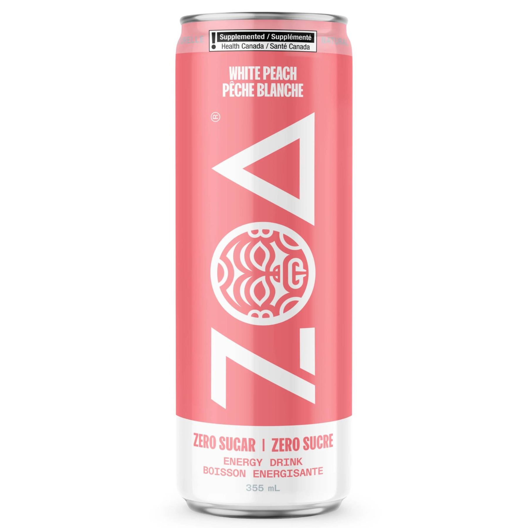 Zoa Energy Drink Zero Sugar White Peach 12 x 355ml Cans