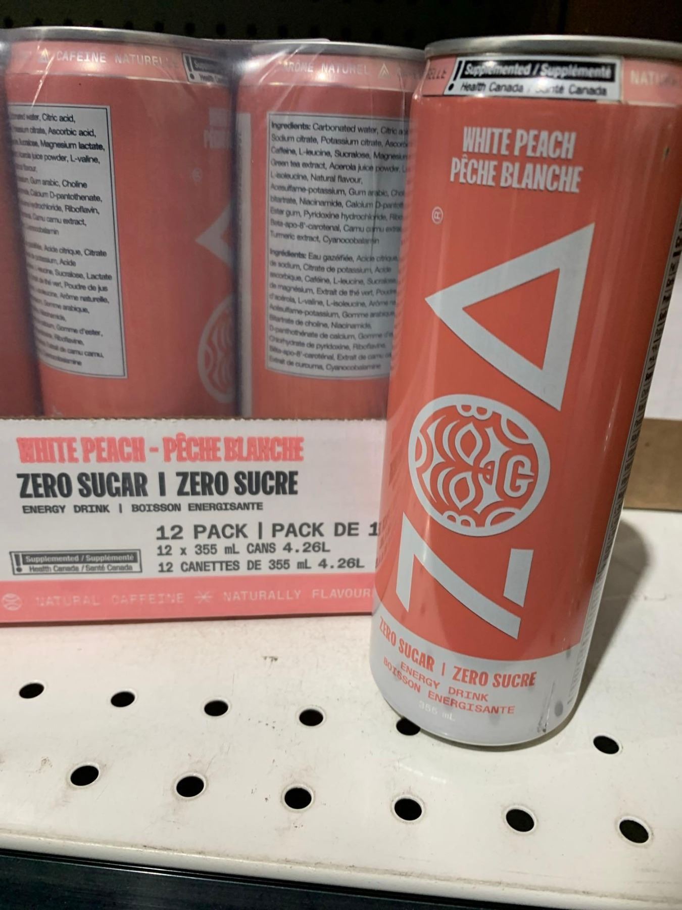 Zoa White Peach Zero Sugar Energy Drink 12 x 355ml