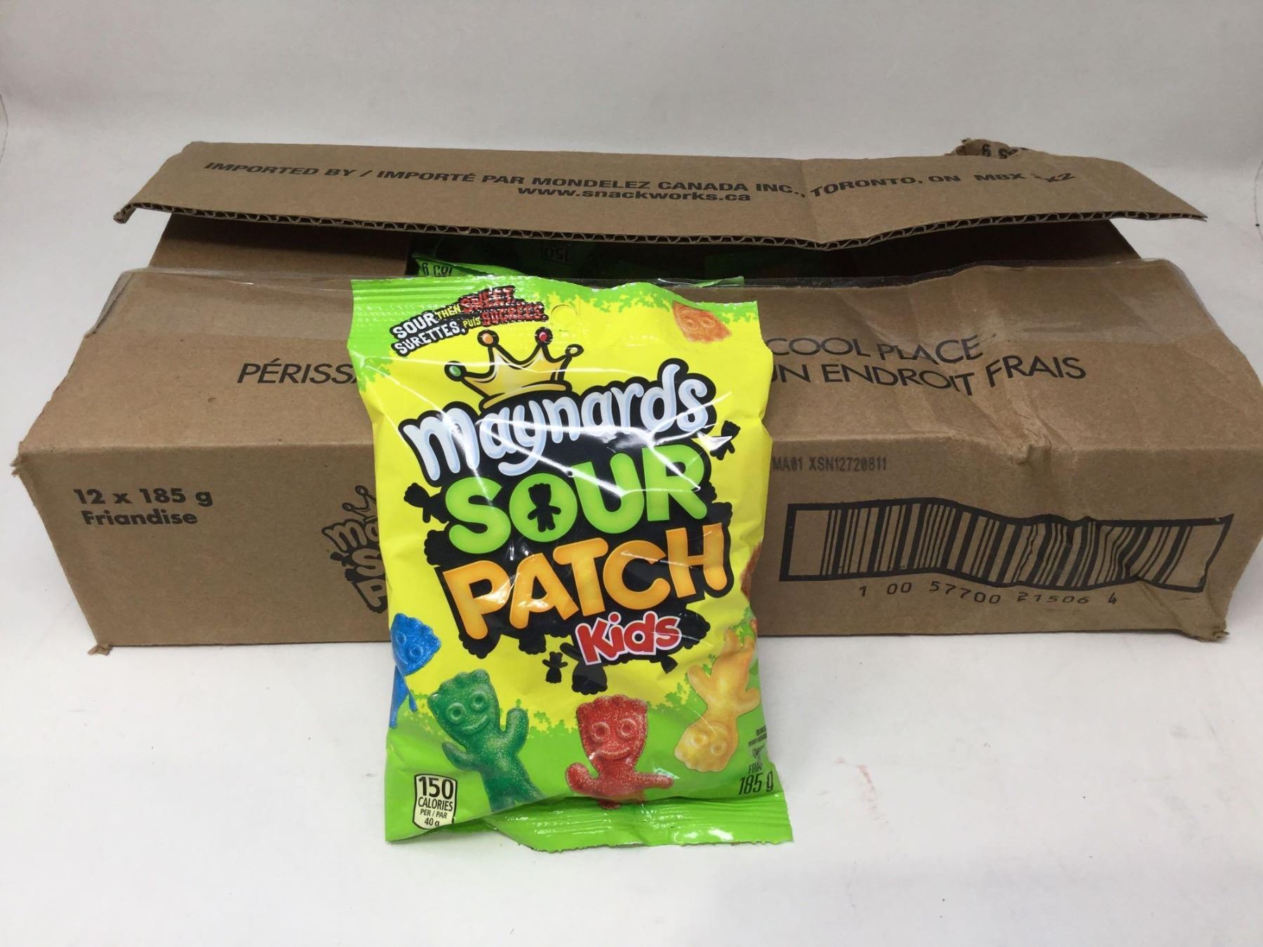 case of 12x185g Maynards sour patch kids candy