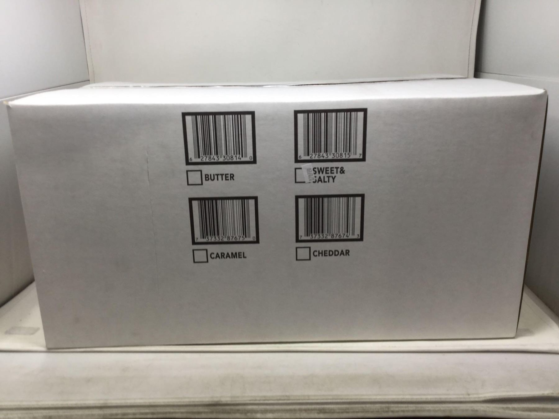 case of Skippy'spopcorn (Butter, sweet and salty, caramel, and cheddar flavors) 12xlarge bags