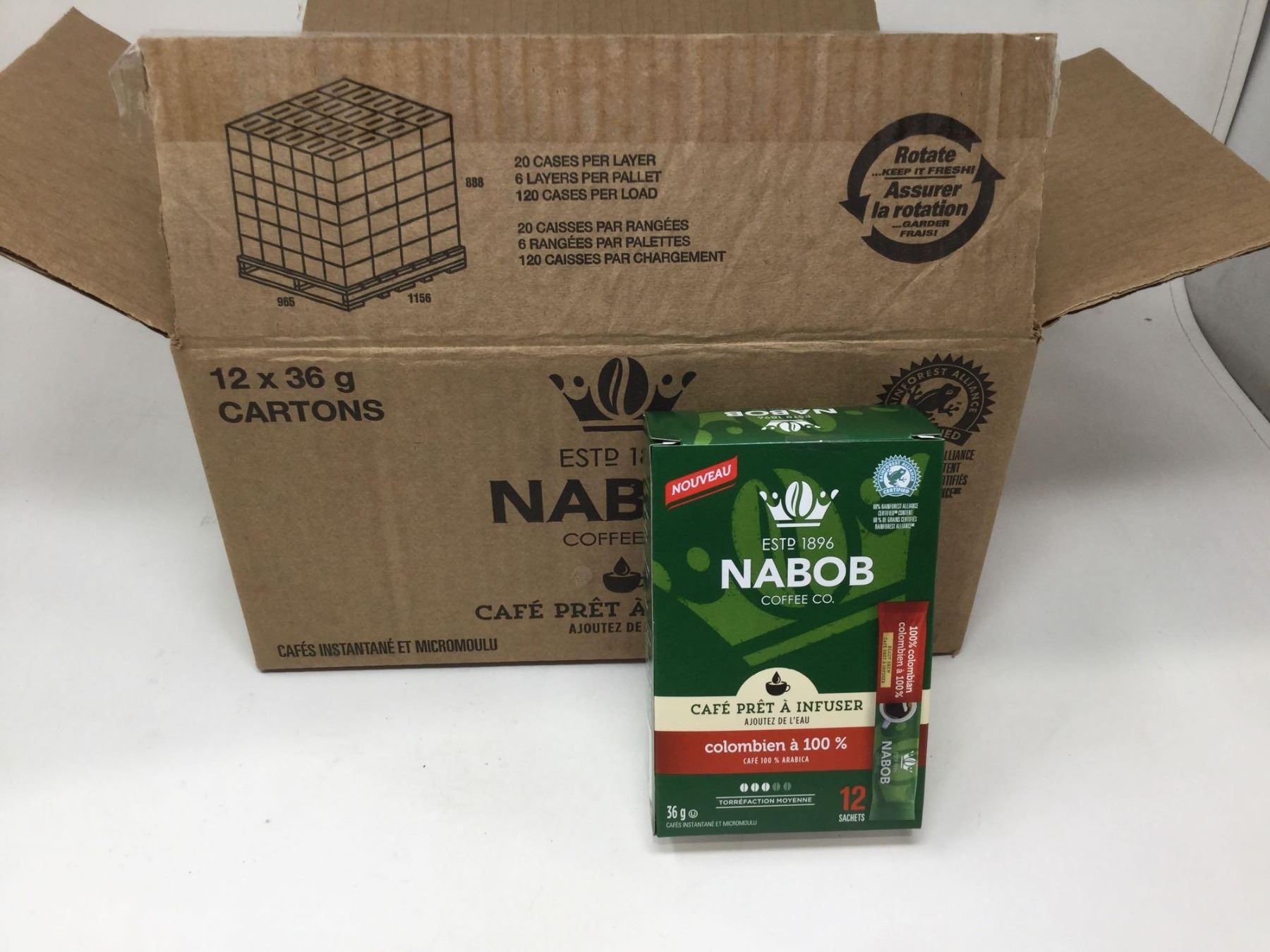 case of12x36g Nabob coffee sacs