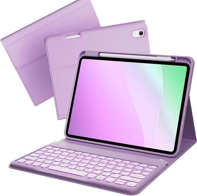 kenke for iPad 10th Generation case with Keyboard (10.9 Inch, 2022), 7 Colors Backlit Detachable Wireless Bluetooth Round Key Keyboard, Flip Stand Case for iPad 10th Generation, Light Purple **IPad not included**