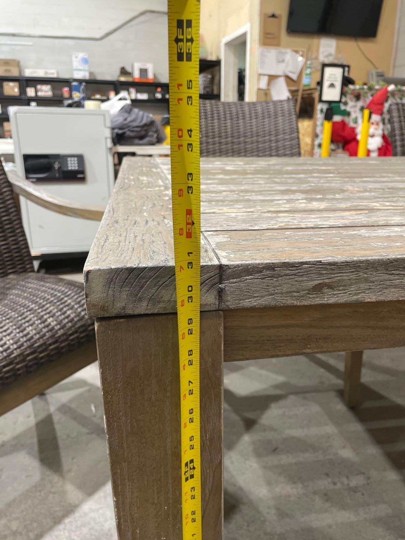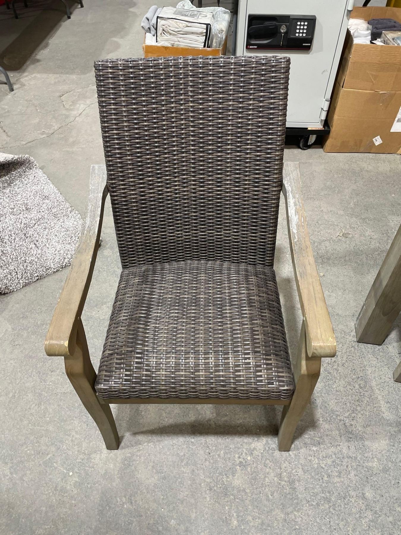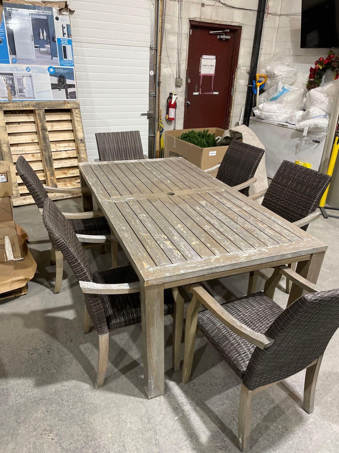 outdoor wood patio table with 6 wicker chairs